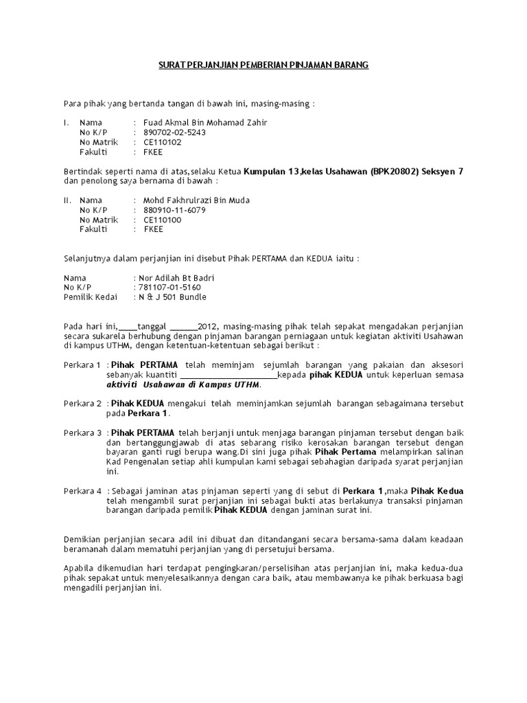 Perjanjian Pinjaman Persahabatan Pdf